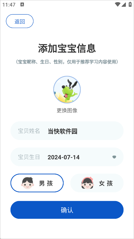 5、确认好之后我们返回宝宝信息界面就能看见我们添加的宝宝了。