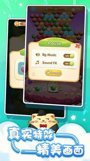 1、看似简单容易的射击闯关挑战游戏,发射不同的泡泡进而达到消除的效果;