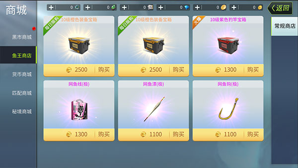 鱼王商店中会根据自身可装备最大等级的装备来实时刷新可兑换的宝箱。(从9级升级到10级后,鱼王商店会刷新10级的装备)