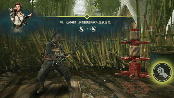 4、进入后有一个新手教程,点击按钮,即可快速攻击;