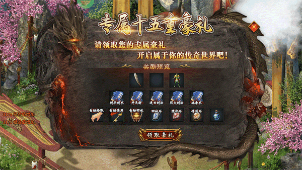 4、领取你的专属十五重好礼,开启属于你的传奇世界;