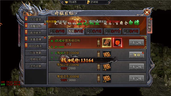 2、随着玩家完成任务的同时,还有机会完成开服活动里面的任务,里面有自充卡;