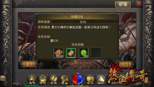 (3)当到达20级的时候“除魔”系统开启,升级会变得越来越简单。这个时候游戏了解的大概也很熟悉了,游戏界面里还有活动日历和老兵秘籍,助你更加了解游戏!