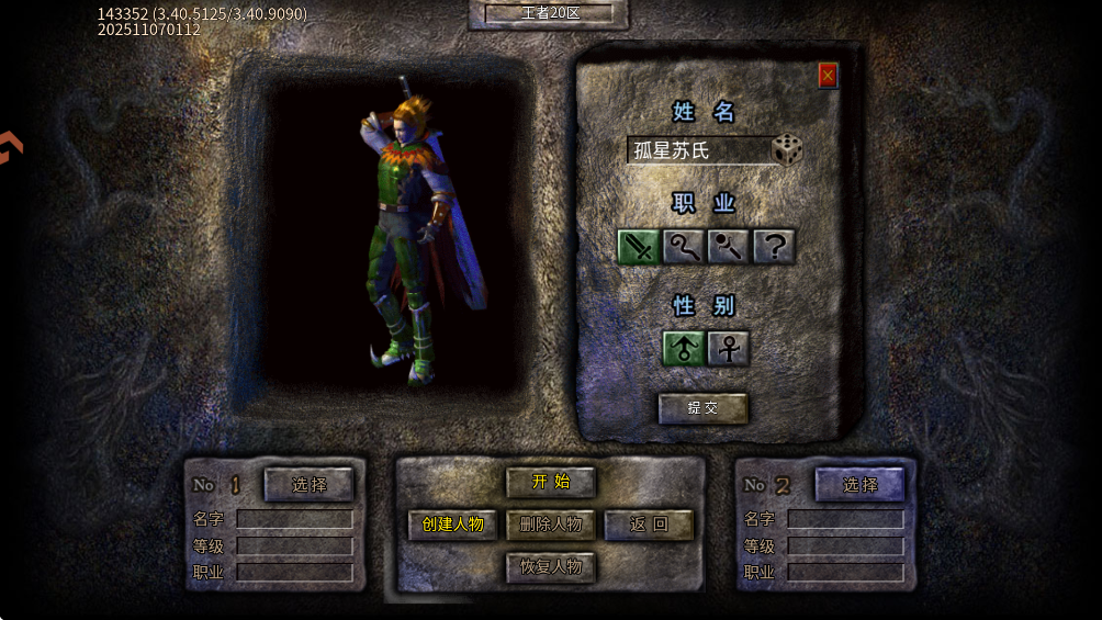 1、首先玩家需要先创建一个角色,选择角色职业后点击提交