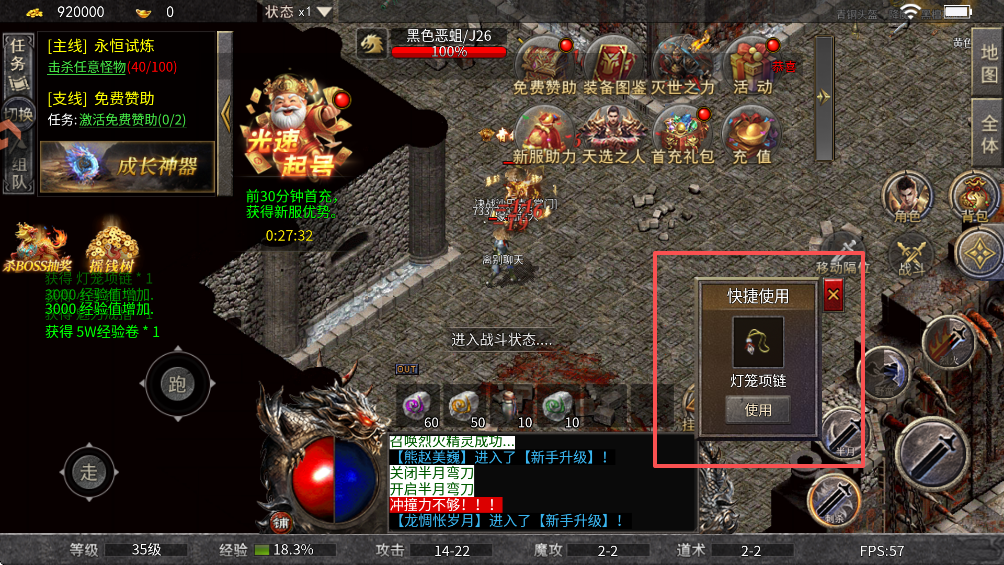 2、游戏中玩家可以先根据左上角主线和支线任务去熟悉玩法和提升等级
