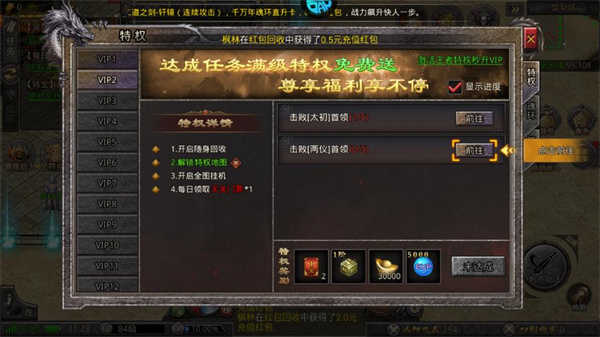 2、散人玩家进入游戏后建议只充前2档赞助特权,只需36元全部搞定