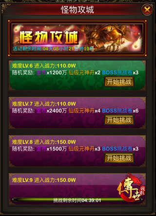 对于如此珍贵的宝物,中州大陆上的勇士们可谓是抢破头。《传世挂机》想勇士之所想,本周末重磅开启元神丹福利活动,勇士们参与各大周末活动就能轻松获得元神丹奖励。即日起至7月10日,勇士们在怪物攻城活动中,通过击杀怪物就得各种品阶的珍贵元神丹。同时,通过每日登录、充值或消费等福利任务,更有仙级元神丹唾手而得。
