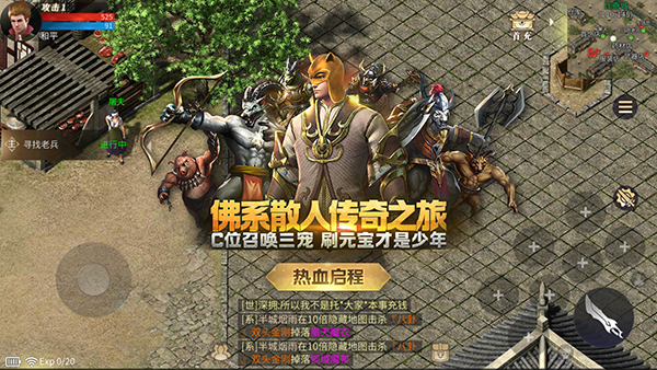 1、进入游戏玩家就可以享受佛系传奇之旅。