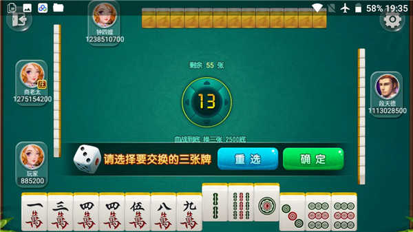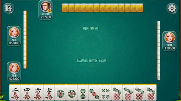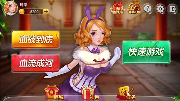 主界面清晰划分玩法入口,可按个人偏好一键切换血战、血流、换三张等模式,并自由设定难度等级(初级→传奇),系统自动匹配对应强度AI阵容。