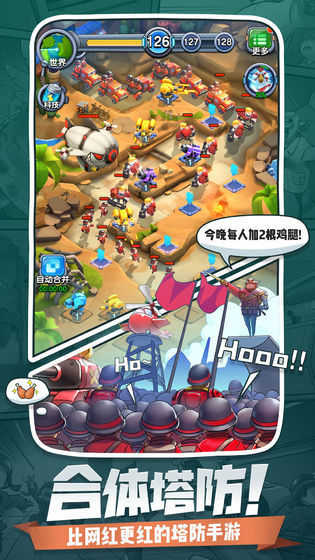 一款基于经典塔防设计的策略休闲游戏,拥有着幽默可爱的画风和剧情。玩家只要装备合理的防御阵容,就可以消灭前来挑战的敌人。游戏中有四种类型的炮台,每种炮台都有着不一样的功能,玩家可以随意组合搭配,炮台还可以加装筹码,玩家在其中可以体验到不一样的战斗技巧。