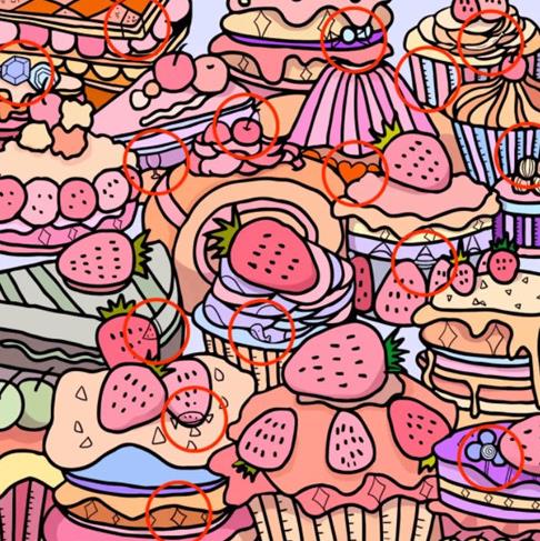 4、西瓜在左下角蛋糕的深色草莓上