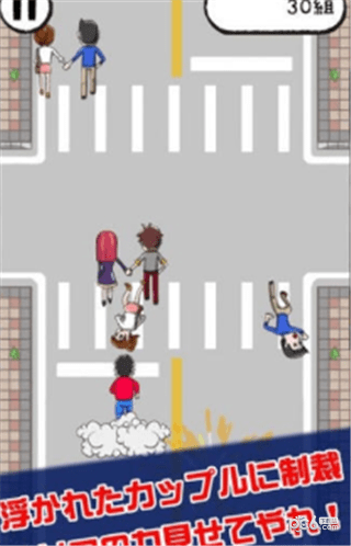 3、玩家操控单身狗去扑灭牵手的情侣,拆散一对是一对!