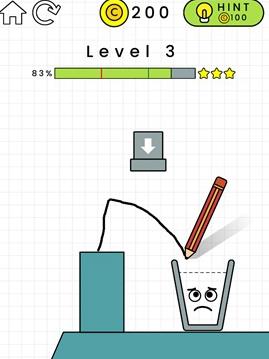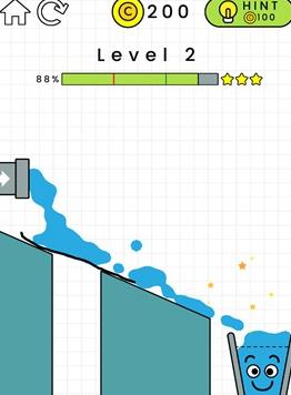当然,每一个关卡理论上都是可以获得三星的,只是看大家使用的方法是不是最优的方法,上图中其实就可以只用单边画线,就能托住杯子了,这样也就能获得三星了,。