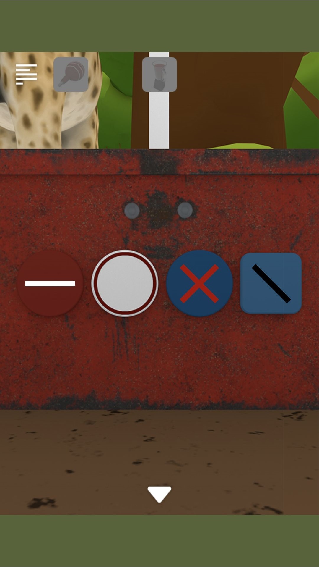 回屋子里,用锤子击碎蛋糕的玻璃罩,观察中间地上的披萨盒上的图案,结合大象图垃圾箱旁边的披萨盒上图案得绿1紫2红3黄3蓝4开自由女神像图左侧电视机最下方格子得硬币,投入白马图左侧贩卖机,得一瓶水和密码1129,用扫帚换取女巫手上的铲子