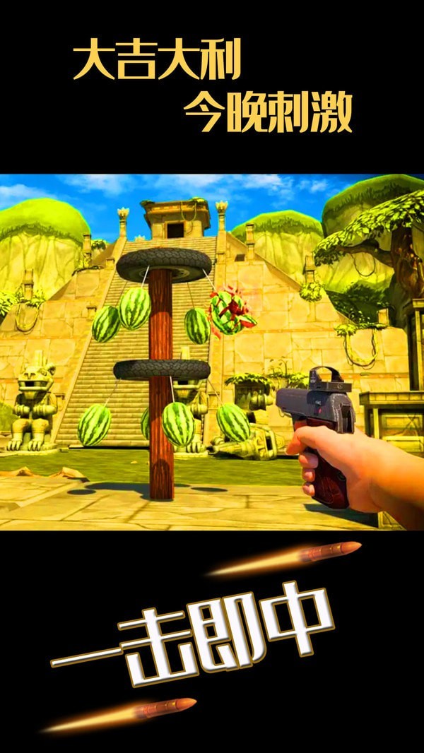 在规定的时间内多打些西瓜,各种不同的射击水平挑战游戏;
