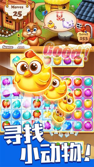 3、简洁的操作界面经典的纵版场景消除之旅一指连发。