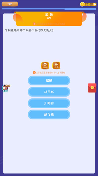 只要选择其中一个,选对了进入下一题,选错了也没事,可以看视频广告复活重来。