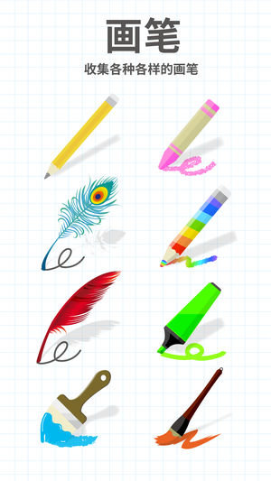 从铅笔到彩色铅笔,蜡笔等等,我们准备了各种颜色形状的画笔。收集各种画笔勇敢的闯关吧。