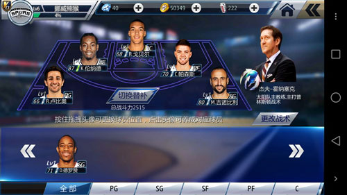 众所周知只有优秀的教练,才能培养出一支优秀的NBA球队,玩家们作为NBA篮球经理的角色,自然需要重视教练的选择。游戏真实收录了NBA史上各位著名教练,如“菲尔·杰克逊”、“格雷格·波波维奇”、“杰夫·霍纳塞克”等等,每一位主教练都有着自己独特的战术打法,可以有效的提升全队的战斗力,如果搭配上合适属性的球员更是可以爆发出超强的战斗力,同时教练还可以发动战术QTE,让队员们完成炫酷得分,打爆你的对手。