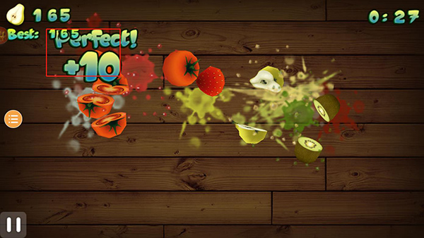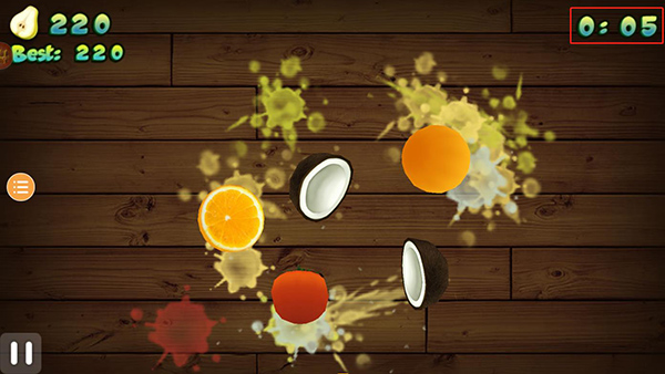 4、在规定时间内尽可能切开更多的水果,累积更多的得分即可;