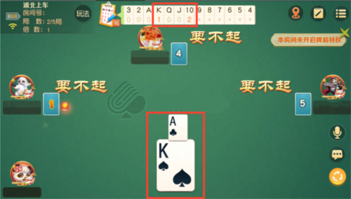 后面玩家打出的牌必须比前面玩家打出的牌大,在宝成会如果3家PASS,则出牌方所在队收到牌面中的牌分,并继续出牌,直到游戏结束。