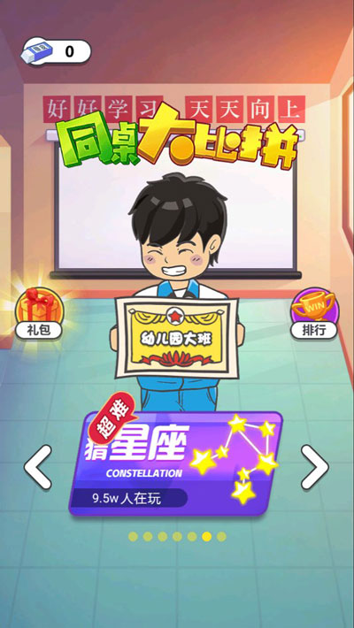 同桌大比拼游戏是一款超级有趣的休闲游戏!无论你是哈哈大笑的爆破王,还是心思缜密的智慧使者,这款游戏都能满足你对刺激与挑战的渴望。通过拼图解谜、猜字画画等多种有趣玩法,你可以和小伙伴们展开一场灵动的脑力大冒险。随着关卡的逐渐升级,你将挑战各种脑洞大开的任务,比如迷宫逃脱、金钱翻倍等,让你眼花缭乱,乐趣无穷