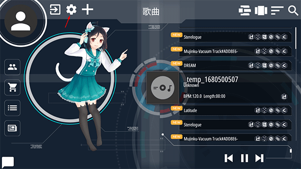 1、打开malody最新版后,在游戏大厅处,我们点击齿轮图标,进入设置中;