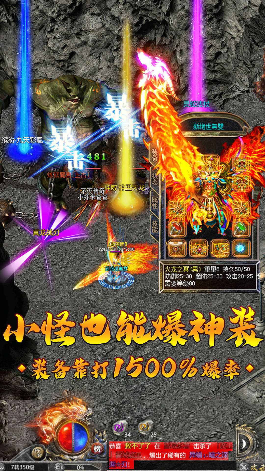 爆出来的装备可以进行随时的兑换,每天元宝赢不停。