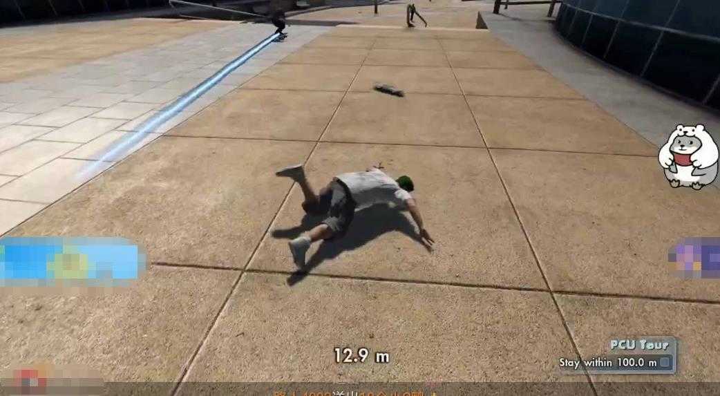 别看秦川是国内首屈一指的主机大佬,但对这款游戏还不是很熟悉。仅一个简简单单的豚跳和180°板翻便联系了好长时间。游戏中,一位教练一直在前面引路,并指引秦川沿着他的轨迹滑行。起初为了完成任务,教练在前面做什么动作,秦川便在后面模仿什么动作。然而几个回合下来,秦川的骨头都要摔散架了,脸上更是鼻青脸肿。