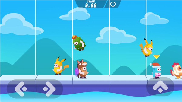 5、在一起猜水果中,玩家需要记住水果在那个位置,并在相对应的水果下面呆着即可,不然会掉在水里面。