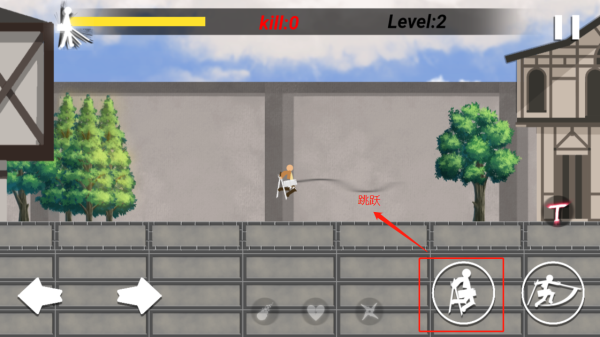 当还是小火柴人时点击图示进行跳跃,可进行多段跳;