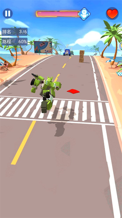1、下载进入游戏,通过滑动屏幕来控制汽车人移动;