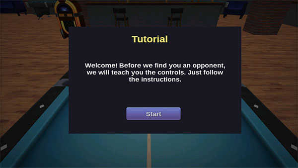 1、进入3d台球游戏手机版,点击“Start”开始,将进入新手引导教程。