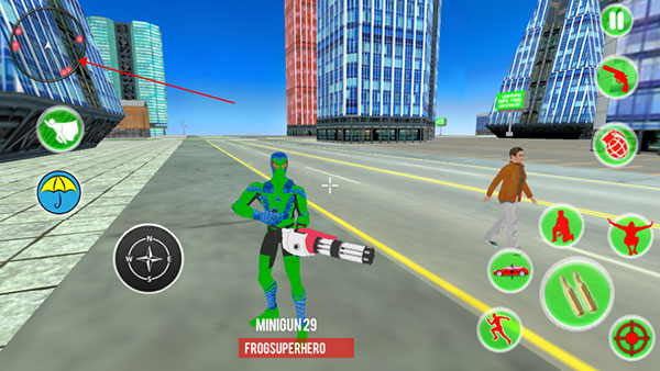 4、在这里我们要做的就是操作蜘蛛侠英雄消灭地图场景内的敌人(敌人的方位将显示在雷达内)