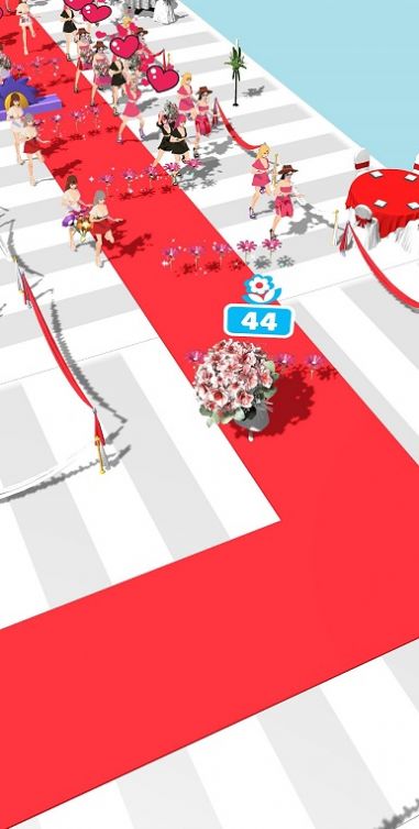 1、新娘撒花跑酷游戏,新娘在红毯上奔跑,一边跑一边收集花束。