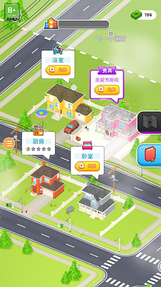 6、游戏场景丰富,有浴室、厨房、卧室、圣诞节房间等等,随着游戏的进行还能解锁更多区域;