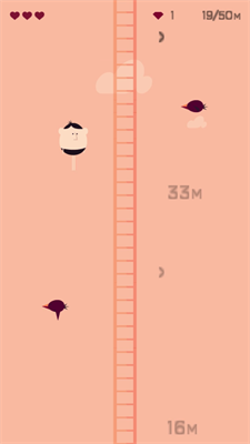 2、当你在高空中被小鸟攻击到时会损失一格心,并继续向上,当三格心全部消耗完毕就会失败。