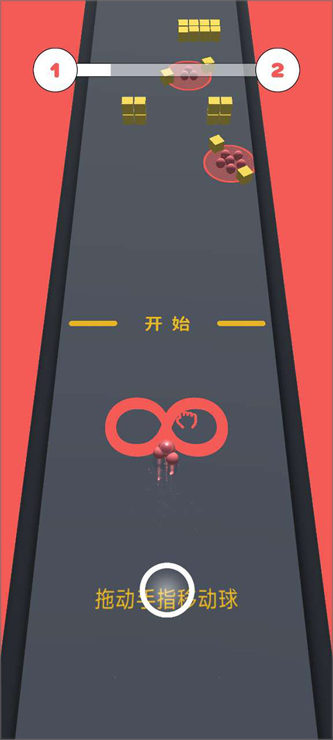 1、下载安装好滚球大作战,进入游戏,你可以使用手指左右移动来控制小球。