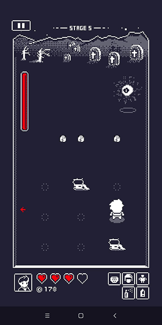 4、不管游戏的攻击方式再怎么多,留给我们的操作方式却只有那么多,更多的是考验我们的反应能力。所以我们的躲避地方,在后面基本上就只有九个格子,看似非常的简陋,但实则却非常的困难。能从这小小的九宫格,以及一些与众不同的攻击里面,我们可以玩到一种非常紧张和刺激的感觉。感觉这个设计不仅仅保留了复古的元素,更是在有限的性质之内,增加了游戏的玩法。