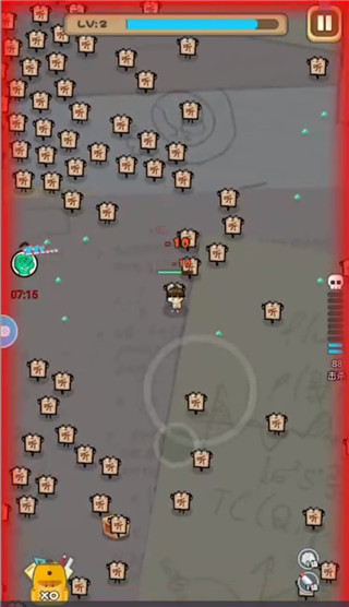 1、进入游戏,滑动屏幕来控制角色行动,玩家只要专心走位就行,角色会自动攻击的,大幅度解放你的双手,不过要小心别离怪物太近哦。