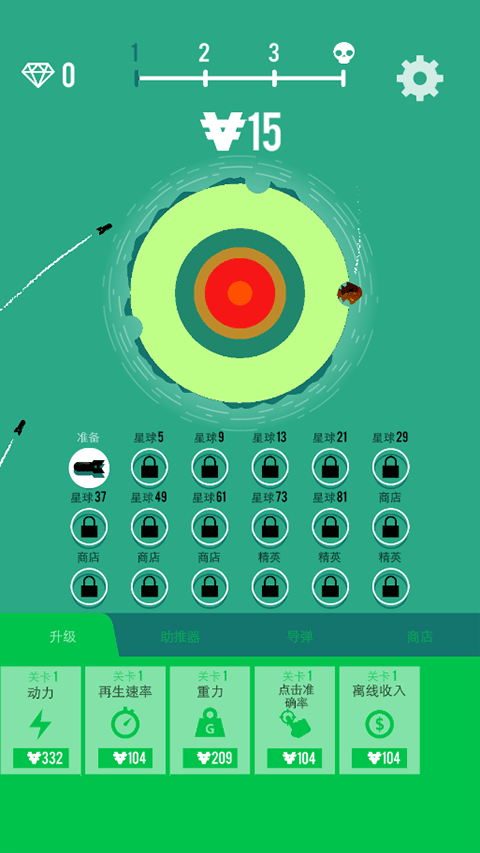 4、在轰炸中提升功率,再生率,重力,点击准确性和离线收入。
