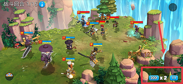 3、然后就会自动和敌人进行战斗,点击右下角可以调整战斗速度