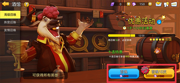 7、游戏中拥有丰富的英雄角色,玩家可以使用召唤卡和钻石在酒馆中召唤新的英雄角色