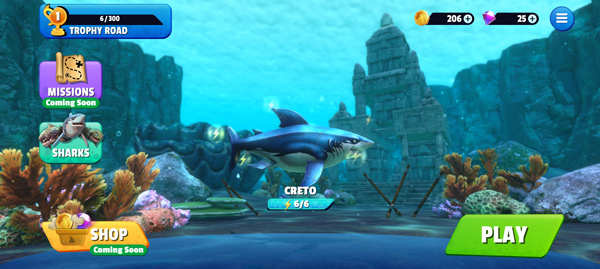 5、逐渐解锁更多水下凶勐野兽:灰鲭鲨、锤头鲨、虎鲨和无敌的大白鲨!