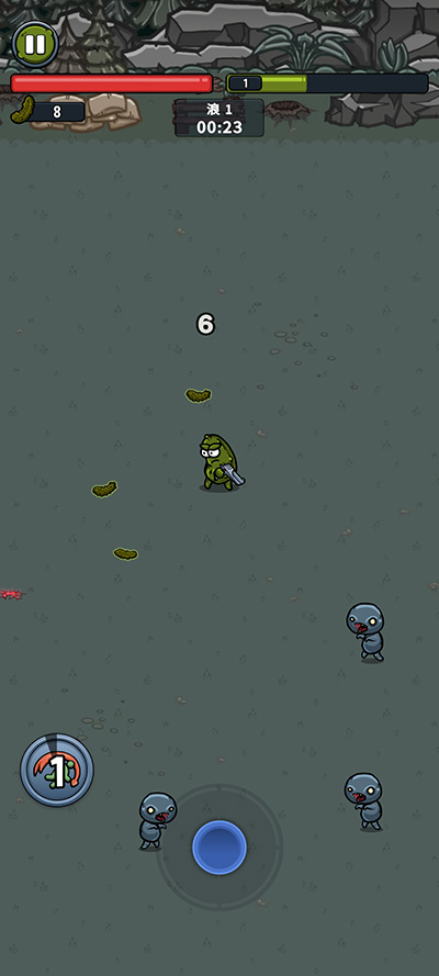 2、玩家将扮演一个腌黄瓜,腌黄瓜会自动射击,并附带一个闪避技能。