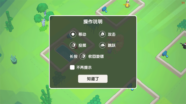 1、通过下方的操作说明,就可以了解到移动、攻击、投掷、跳跃这些按键了。