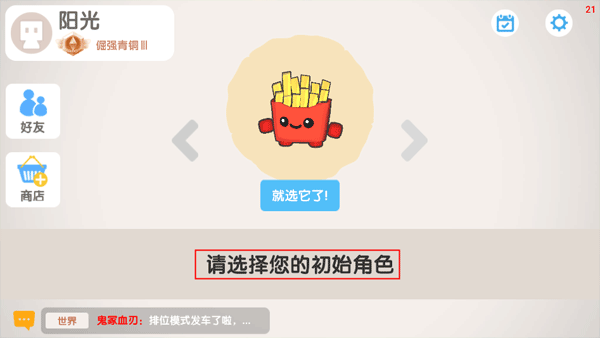 3、热身回合结束后,就可以开始选择你的初始角色了,有香蕉、薯条、牛奶等供你选择。