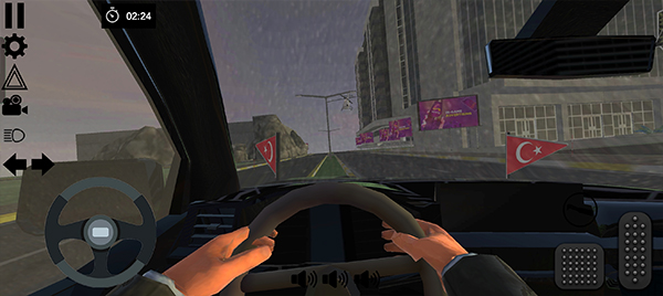 4、滑动左下角方向盘图标来控制车辆的方向;