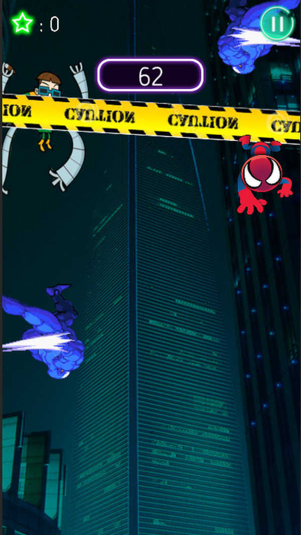 不同的游戏阶段中你需要做出各种不同的游戏操作来让你的蜘蛛侠越跑越远。