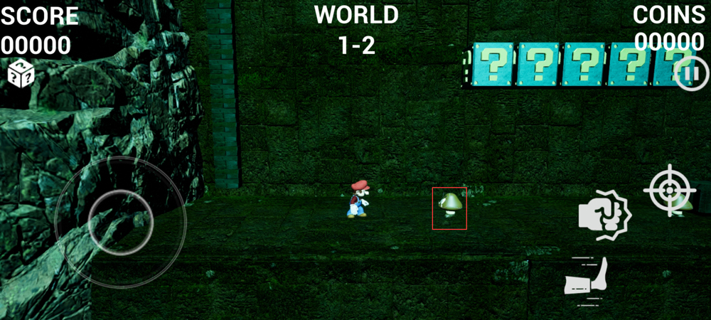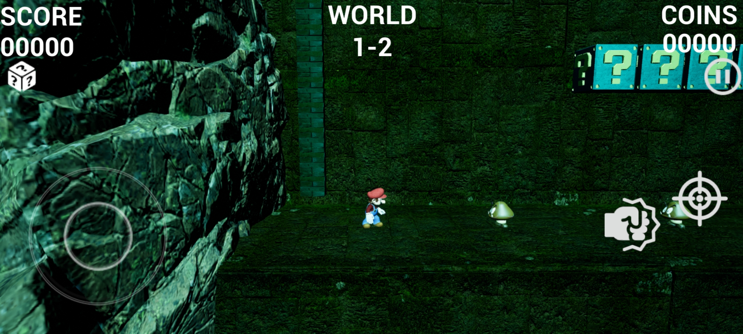 1、进入超级马里奥3d世界最新版本游戏后,左边是控制方向按钮,而右边则是攻击和瞄准